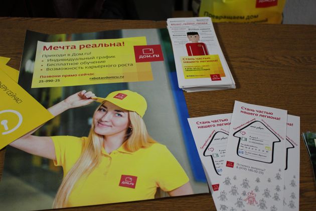 Участникам Ярмарки вакансий раздавали буклеты, подарки и информационные материалы по поиску работы. Следующее подобное мероприятие состоится осенью 2017 года.