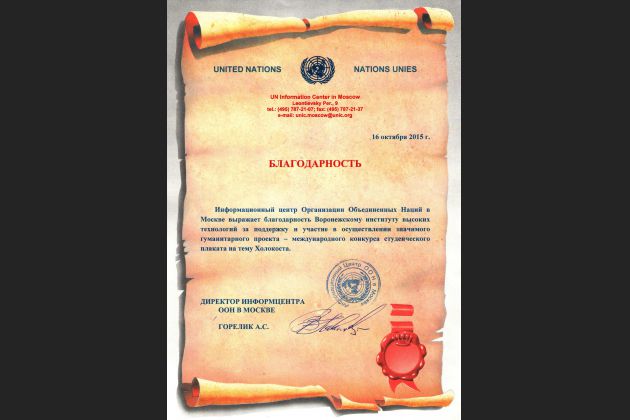 21 октября 2015г. в ВГМУ была открыта выставка студенческих плакатов по проблеме Холокоста.