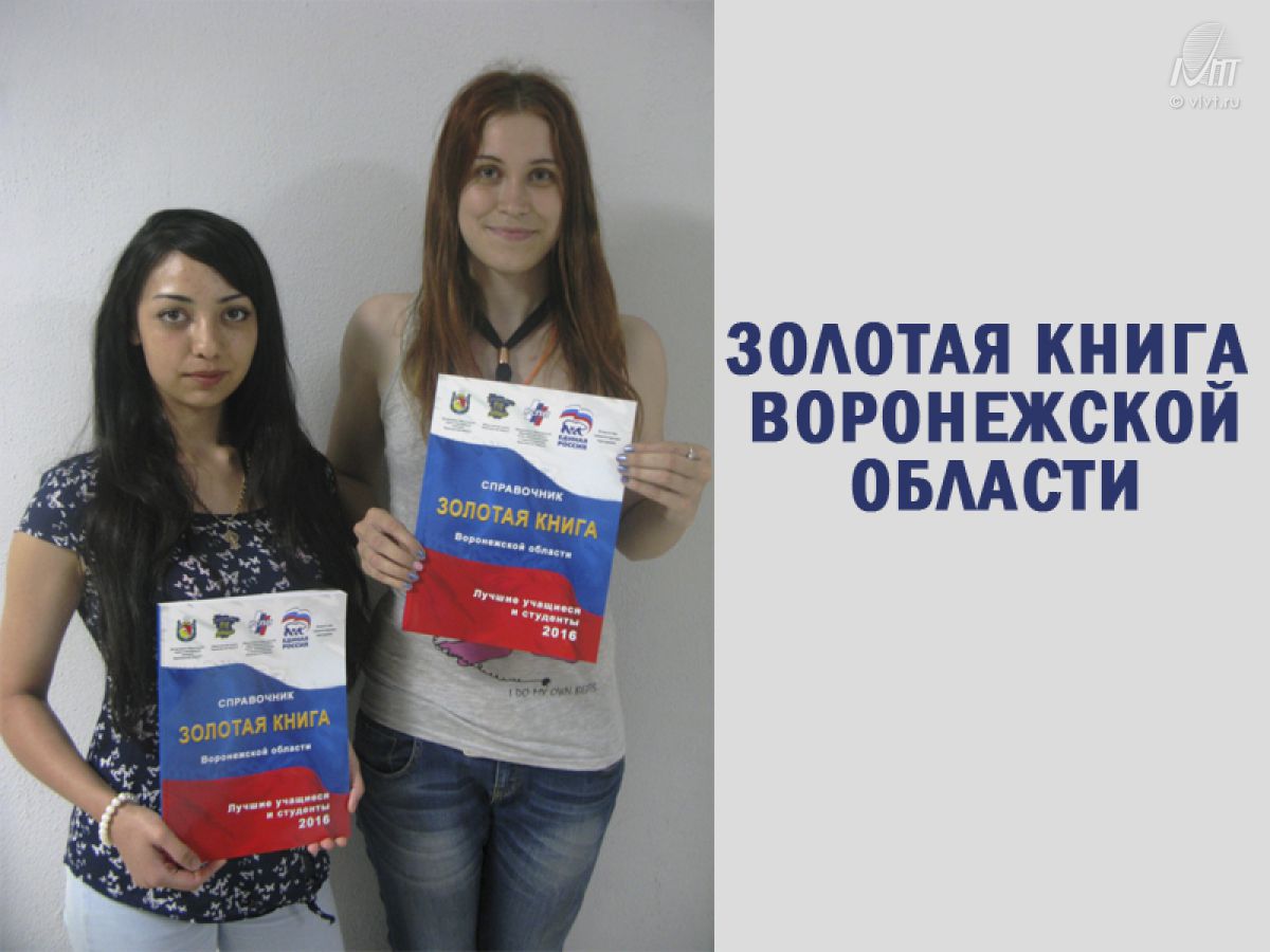 Вышла в свет «Золотая книга Воронежской области: лучшие учащиеся и студенты 2016», в которую вошли сведения более чем по 1000 активных в учебе и общественной жизни учащихся и студентов.